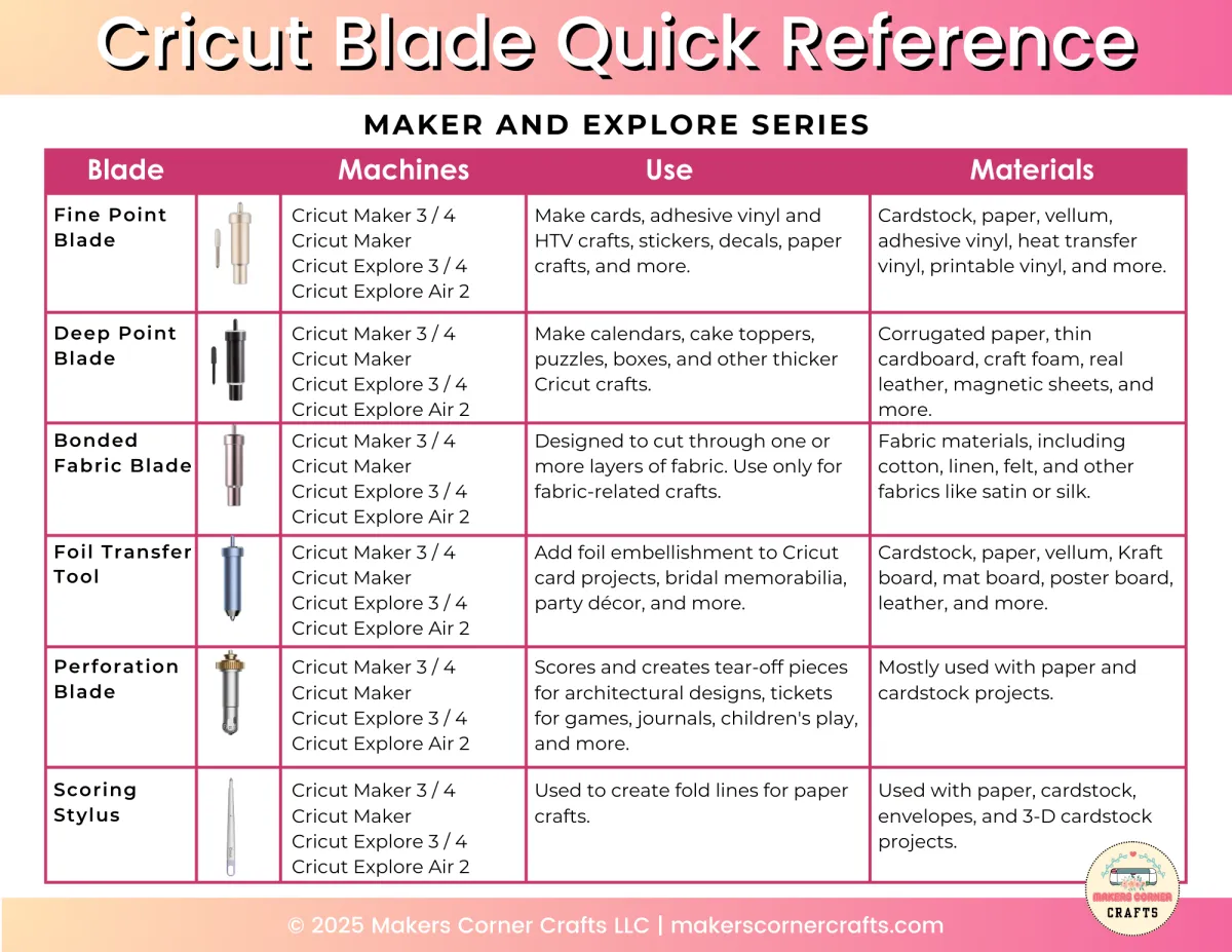 Which blade cuts what? When to change your blade? All the blade info you need in one simple chart you can reference any time.