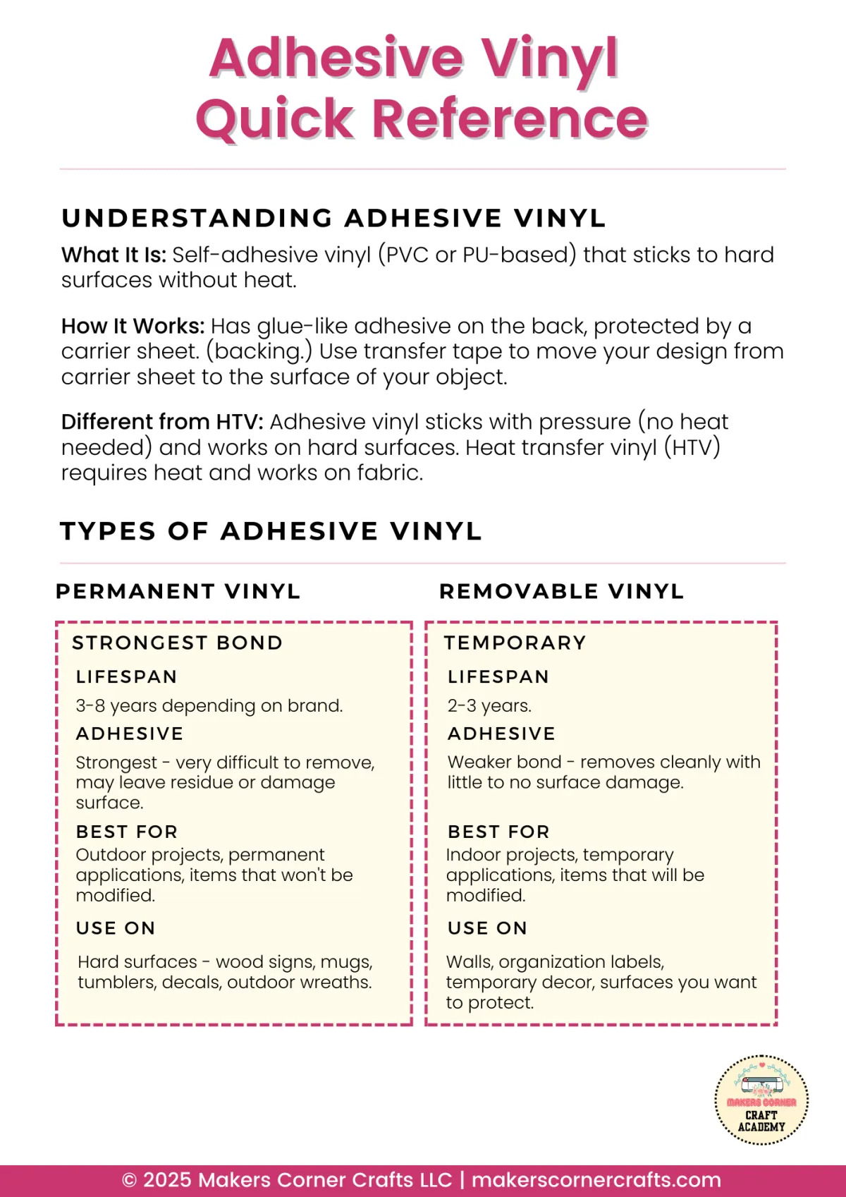 Never confuse permanent and removable vinyl again. Know which type to use for every project—tumblers, walls, cars, and more.