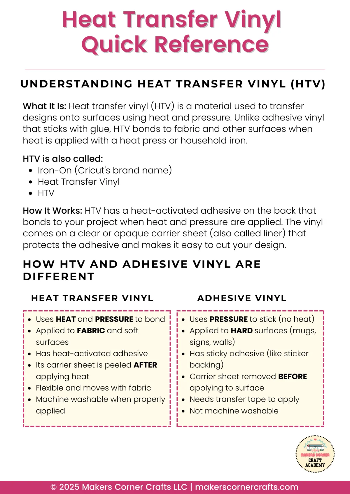 HTV settings, application tips, and which types work best for different fabrics. Your go-to guide for t-shirts, bags, and more.